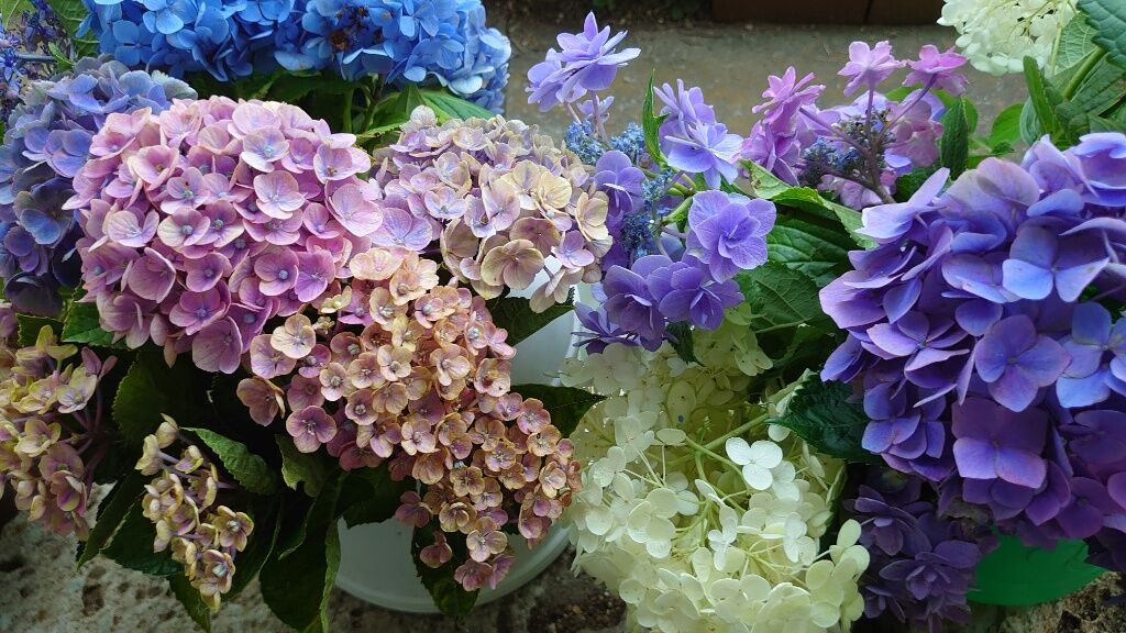 摘み取りの後も 今日も 忙しくて 庭でバケツにつけたままです